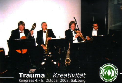 Salzburg ist also der Start für diese fruchtbare Kooperation. Als Repräsentant der Fachrichtung Kunst- und Gestaltungstherapie und des Institutes insgesamt war Dr. Lumma dorthin zur Würdigung von Elisabeth Tomalin’s 90. Geburtstag eingeladen und hatte das TWS JazzQuartett (Two Windhorns & Strings) mit dabei zur Gestaltung des Festaktes und des KunstTherapie und Musik verbindenden Thema „Musik Aliud Meister und Diener der Zivilisation“. (Siehe: www.igkgt-iaact.com/de/auszuege_d.pdf)