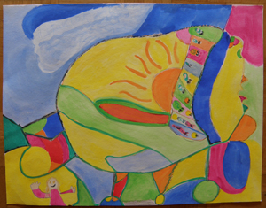 Hier ein Beispiel aus der Praxis. Eines Tages wurden Patrice Fisher, ihr Mann Carlos Valladares und ich dazu eingeladen, bei Schülern der 3. und 4. Klasse der „Intercultural Charter School” im Osten von New Orleans PostTraumaCounseling zu praktizieren, und zwar in der Verbindung von Malen und HarfenMusik. Für dieses Projekt mit 28 Schülerinnen und Schülern konnten wir über Siegfried Hochstein und Hannelore Warning die Firma Faber-Castell dafür gewinnen, wasservermalbare Farb-Malstifte (Jumbo Grip) und Zubehör wie Spitzer etc. zu sponsorieren. Wir baten Patrice Fisher darum, verschiedene ihrer Kompositionen “non-stop” zu spielen, während die Kinder in ViererGruppen malen durften. Es gab für diese Art der Beschäftigung nur ein Thema – für alle gleich: „Wie wir Hurricane Katrina überlebt haben“, und es war uns ziemlich bald schon klar, dass alle diese Bilder den Fachterminus ResilienzBilder bekommen würden: Überlebens-Kraft-Bilder. Das Mal-Arrangement in den Vierergruppen war so angelegt, dass jeder an seinem Platz mit dem Malen eines Bildes begann und dann nach fünf Minuten den Platz wechselnd am Bild des rechten Nachbarn weiter malen durfte. Während der insgesamt 20-minütigen Malzeit spielte die Harfenistin ohne Unterbrechung mit unterschiedlichen Improvisationen das Stück „Sunset at Waver“, wobei Carlos Valladares sie mittels Cajon (südamerikanisches Percussion Instrument) begleitete. Nach viermaligem Wechsel kehre jeder an seinen AnfangsPlatz zurück. Alle waren ziemlich überrascht darüber, wie der rotierende Malprozess in Verbindung mit der Musik ihr Anfangsmotiv ergänzt oder verändert hatte. Während dieser 20 Minuten waren alle Kinder hoch-konzentriert beim Malen, und wenn die Harfenisten mal kurz innehielt, dann gab es Protest: „Miss Fisher, warum spielen Sie nicht weiter? Wir brauchen Ihre Musik beim Malen.“ Die aus solchem Prozess hervorgehenden Bilder sind sehr überraschend – für die Malenden selbst und auch für alle, die sie betrachten dürfen. Wir hatten nach 20 Minuten künstlerischer Tätigkeit 28 ganz verschiedene Bilder zum genannten Thema „Wie wir Hurricane Katrina überlebten“.