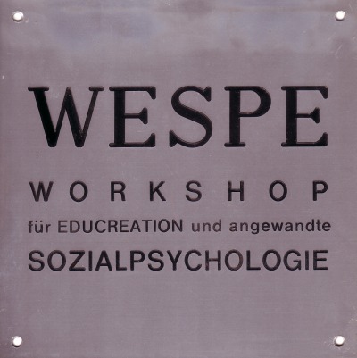 1974 eröffnete der gemeinnützige Verein „Gemeinschaftzentrum Educreation e.V. am 27. Februar einen Kinderladen, also einen Kindergarten in freier Trägerschaft nach dem Konzept von Alexander Sutherland NEILL, Paul & Jean RITTER. Die pädagogische Leitung des Kinderladens hatte Dagmar LUMMA inne, und sie bezog in hohem Maße die Eltern in die tägliche Erziehungsarbeit mit ein. Die in diesem Kontext gemachten Erfahrungen ließen Dagmar und mich verstärkt zu der Erkenntnis gelangen, dass es sinnvoll ist, bei den Erwachsenen selbst anzusetzen, wenn eine partnerschaftlich wertschätzende Grundhaltung an Boden gewinnen soll. Wir gründeten deshalb noch im selben Jahr „die WESPE“, den Workshop für Educreation und angewandte SozialPsychologiE. Der Name wurde gewählt in Anlehnung an das von Wolf BÜNTIG und Gisela BIELITZER gegründete Z.I.S.T. Zentrum für Individual- & Sozial-Therapie, an dem ich in Deutschlands Pionierzeit der Humanistischen Psychologie ebenfalls als Trainer mitgewirkt habe. In dieser Phase waren Jürgen „Stief“ BEHNKE, Regina DÖHRING, Uli STAETS, Waltraud und Dieter SCHAFFRATH am Prozess des Aufbaus beteiligt.